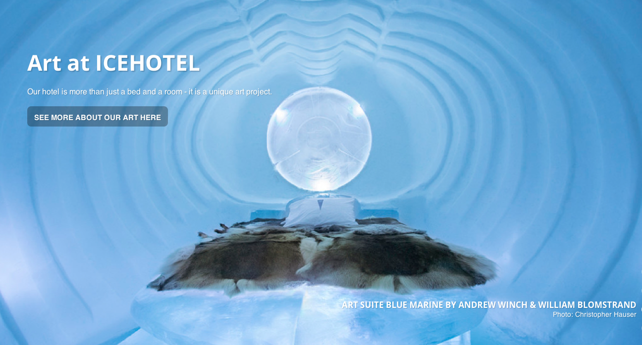 O Ice Hotel  ou Hotel de Gelo na Suécia é o maior hotel de gelo no mundo, é construído todos os anos e funciona de meados de dezembro a meados de abril (em 2014 hospedará até 13/04). A partir de então ele derrete durante o verão nórdico e será novamente reconstruído no início do inverno.