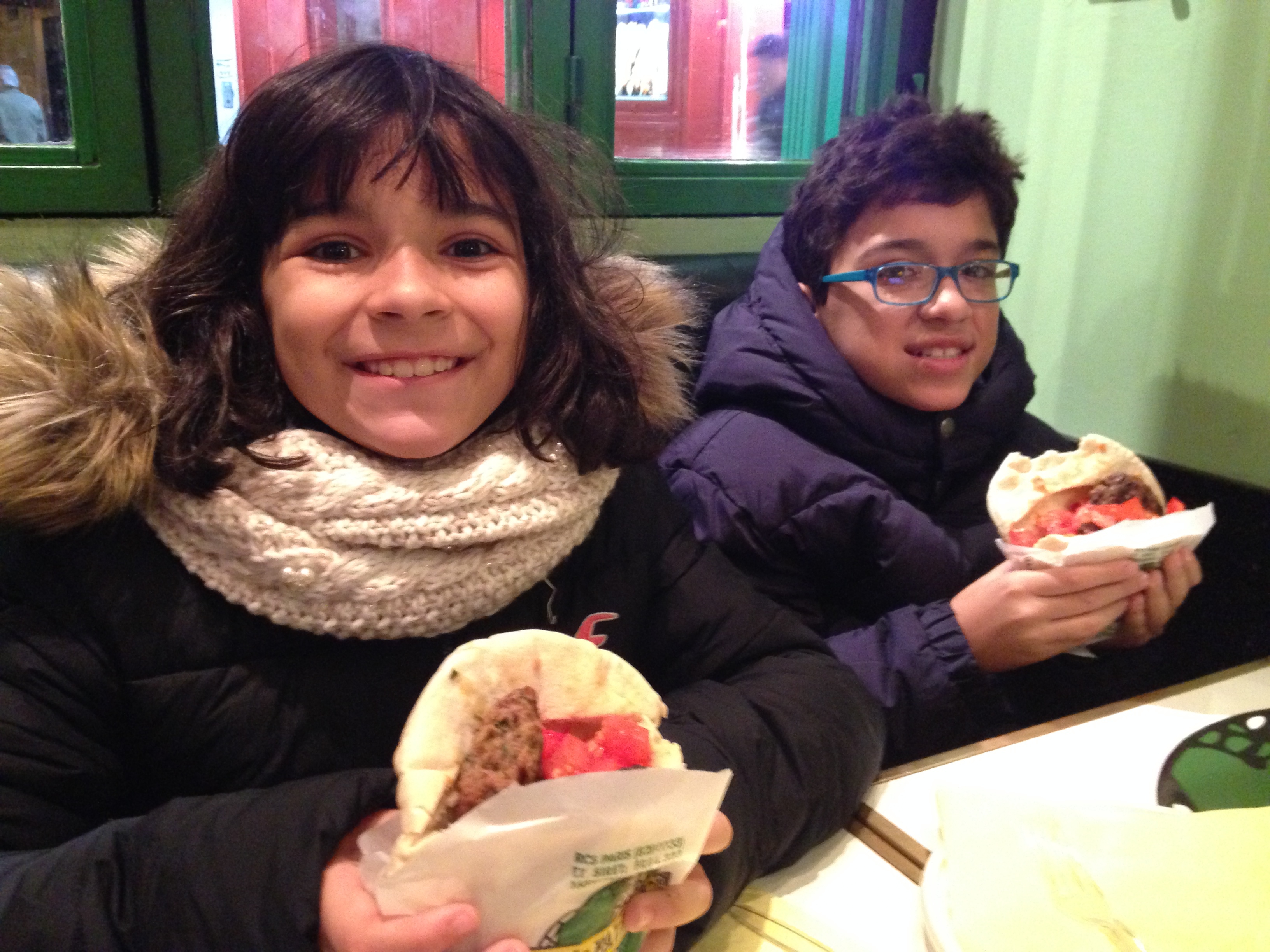 11) por fim, tem uma coisa que amo e que meus filhos também amam! Kebab! Um sanduíche turco com carne de carneiro ou kafta ou falafel, enrolado num pão folha, com salada e molho… Ai, como de joelhos! Agradecendo cada mordida! Minha boca até encheu de água agora! Tem kebab por toda parte em Paris e em toda a Europa, meu preferido é o do L’As du Fallafel (32, Rue dês Rosiers – é meu preferido há mais de 20 anos, muito antes de ficar famoso), próximo da Place dês Voges.