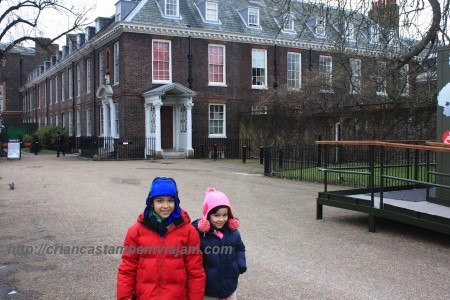 Próximo destino – Kensington Palace. Foi aí que viveu Diana e quando o visitamos em dezembro/2010 parte dele estava sendo reformado para ser a residência oficial de William e Kate após o casamento. O Palácio fica em meio ao lindo Kensington Park, com lago, pássaros, playground e lindo jardim que por si só já valem um passeio com as crianças.