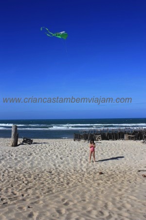 Outra praia linda de areia branca. Aqui tem opções de prática de esportes do tipo kite surf e caiaque ou passeios de buggy, jegue. Mas o mar é mais agitado, tem algas, galhos, pedras… as crianças não a-ma-ram… Mas foi legal, tem que conhecer.