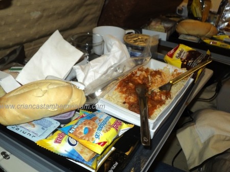 durante o vôo suco, batatinhas, cookies e água são oferecidos frequentemente;a programação das tvs individuais é ótima. A cereja do bolo: viajamos na época do Natal e o avião estava decorado com motivos natalinos.