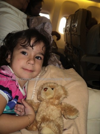 Durante o vôo, antes das crianças dormirem, coloco as camisetas de manga longa e por vezes o fleece – depende da temperatura do ar condicionado.