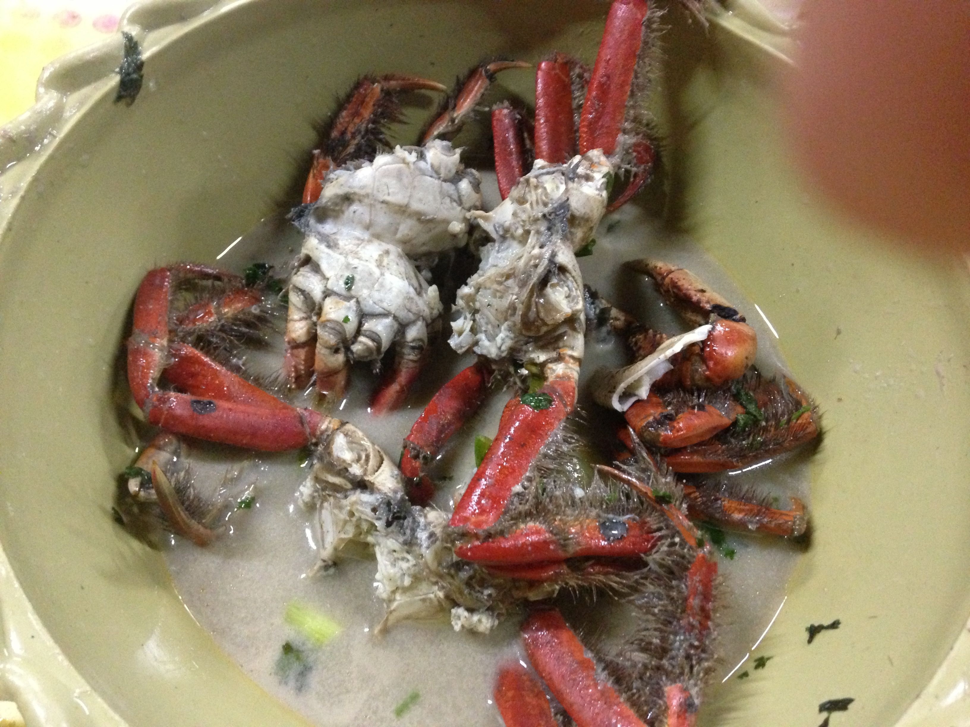 Recebida a “corda” de caranguejos é preciso ter/ saber a técnica de quebrar com um pauzinho – tipo um martelo, e chupar a carne do caranguejo. Eu pessoalmente amo, acho realmente delicioso. Minha turma toda adora, mas preciso te contar que quebrar esse tal de caranguejo não é coisa para amadores…